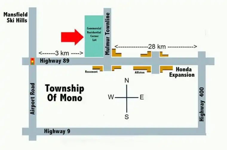 One of the only corner lots, cornering on 4 affluent townships Mulmur, Mono, Adjala and Tosorontio, zoned for both commercial and residential use in all of Dufferin and Simcoe County. Located in Rosemont, in the township of Mulmur, it presents a picturesque countryside setting with rolling hills and scenic landscapes. Conveniently situated near Alliston, which is slated for a $15 billion (Honda) expansion and just north of newly proposed highway 413, Mansfield Ski Club, Orangeville, Hockley Valley, and Creemore Hills. Approximately 1 hour from the Greater Toronto Area (GTA), it provides prime highway 89 corner lot exposure for numerous business prospects while offering the convenience of working from home. Walk view property anytime with or without a realtor or an appointment.