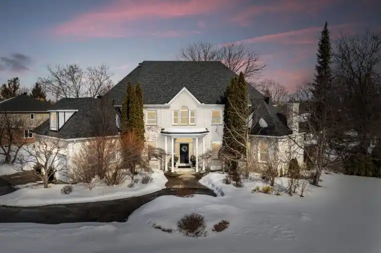 This dreamy Manotick Estates home offers stunning curb appeal with its white brick timeless beauty. Mature trees adorn this special lot, featuring an inground pool and an abundance of lush landscaping; offering natural privacy, relaxation and plenty of outdoor adventure. Upon entering, note the thoughtful design to welcome in natural light and architectural grace throughout. The circular foyer emphasizes its grandness, showcasing a curved staircase and provides a sneak peak to the surrounding rooms. The dining, living and sunken family room spaces all feature French doors, each with its own fireplace. Spacious kitchen with walk-in pantry, outdoor access and a short-cut to the dining room. Private home office and bonus sunroom with outdoor access, surrounded by windows and skylights. Snuggle into the 2nd floor reading nook/loft, bordered by 5 bedrooms, 3 ensuites and a full main bath. Furniture layouts are endless in the large primary retreat featuring 2 walk-in closets; or combine them for one divine dressing room. Lower level with recreation/living spaces, full bathroom, storage areas and handy 2nd staircase to garage, mudroom, laundry and powder room. Enjoy the company of friendly neighbours & all Manotick has to offer while exploring nearby parks, with one just 3 houses away. 48 hr irrev.