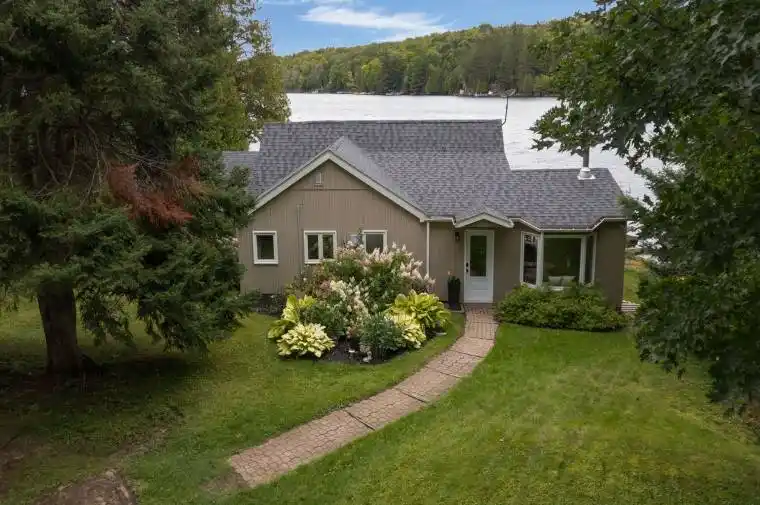Can Your Imagine Yourself Enjoying this view !! Lakefront Paradise on Stunning Horn Lake! Discover your year-round retreat on the pristine shores of Horn Lake , one of the area’s most sought-after destinations for recreation and relaxation. This beautifully updated 1,500+ sq. ft. home offers breathtaking lake views from the living room, deck, and private dock, creating the perfect blend of comfort and natural beauty. Step inside to enjoy rustic elegance, featuring solid pine accents and a cozy wood-burning fireplace. Recent updates ensure peace of mind, including a new propane furnace (2022), energy-efficient windows & patio door (2021), a resurfaced deck (2024), and a freshly shingled roof (2019). For added space and versatility, a detached 24′ x 24′ garage/shop includes a finished upper level, ideal for guests, a studio, or extra living quarters. Your private dock offers deep water access, perfect for swimming, boating, and soaking in the crystal-clear beauty of Horn Lake. This lakefront haven is ready for you to enjoy. Don’t miss your chance to own a piece of paradise ,, schedule your private viewing today!