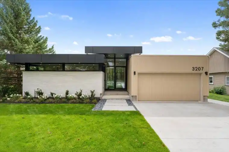 Welcome to 3207 Vivian Line — an architectural masterpiece crafted by SMPL Design Studio, where modern design meets timeless sophistication. This one-of-a-kind residence features expansive floor-to-ceiling windows across the rear facade, flooding the home with natural light and offering a seamless connection to the outdoors. The heart of the home is the custom-designed kitchen with striking black and walnut cabinetry, a show-stopping 15-foot Vanilla Noir Caesarstone island, and a walk-in pantry for added function and style. The open-concept living and dining space is anchored by a sleek gas fireplace and light-toned engineered hardwood floors that flow throughout the main level. The home offers three main floor bedrooms, each with custom-built wardrobes. The primary suite includes a private 3-piece ensuite, while a separate 4-piece bath serves guests and family. The fully finished lower level adds a cozy rec room with a second gas fireplace, a fourth bedroom, an additional 3-piece bathroom, and ample storage. Outside, a modern concrete driveway leads to a spacious two-car garage. A perfect blend of form, function, and flair this home is a rare offering in a sought-after Stratford location.