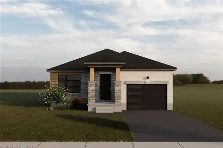 BUILDER’S BONUS!!! OFFERING $20,000 TOWARDS UPGRADES!!! THE CROSSROADS model is for those looking to right-size their home needs. A smaller bungalow with 2 bedrooms is a cozy and efficient home that offers a comfortable and single-level living experience for people of any age. Upon entering the home, you’ll step into a welcoming foyer with a 9′ ceiling height. The entryway includes a coat closet and a space for an entry table to welcome guests. Just off the entry is the first of 2 bedrooms. This bedroom can function for a child or as a home office, den, or guest room. The family bath is just around the corner past the main floor laundry closet. The central living space of the bungalow is designed for comfort and convenience. An open-concept layout combines the living room, dining area, and kitchen to create an inviting atmosphere for intimate family meals and gatherings. The primary bedroom is larger with views of the backyard and includes a good-sized walk-in closet, linen storage, and an ensuite bathroom for added privacy and comfort. The basement is roughed in for a future bath and awaits your optional finishing. BONUS: central air conditioning, asphalt paved driveway, garage door opener, holiday receptacle, perennial garden and walkway, sodded yards, egress window in basement, breakfast bar overhang, stone countertops in kitchen and baths, upgraded kitchen cabinets and more… Pick your own lot, floor plan, and colours with Finoro Homes at Maitland Meadows. Ask for a full list of incredible features! Several plans and lots to choose from Additional builder incentives available for a limited time only! Please note: Renderings are artists concept only and may not be exactly as shown. Exterior front porch posts included are full timber.
