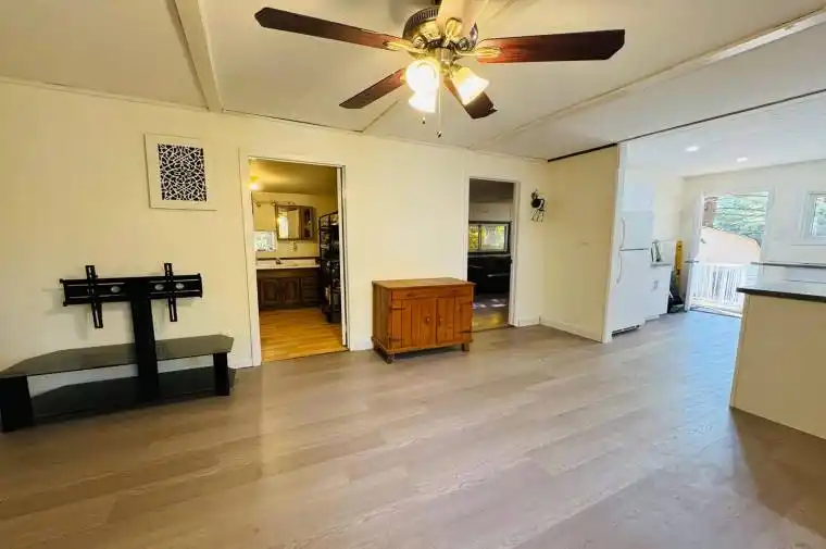 This charming 740 sq ft mobile home offers four-season living with three bedroomsETECTOR and one bathroom.It features a newly renovated kitchen, upgraded living room flooring, and a new deck with railings, perfect for outdoor relaxation. Situated on a spacious lot, there’s plenty of room for gardening and outdoor activities. A good-sized shed is included for extra storage.NERLocated in a quiet neighbourhood just 15 minutes from Orillia and Gravenhurst, The land lease is $393 per month, making it an affordable option. Experience the comfort and charm of this mobile home. Schedule a viewing today! AS IS