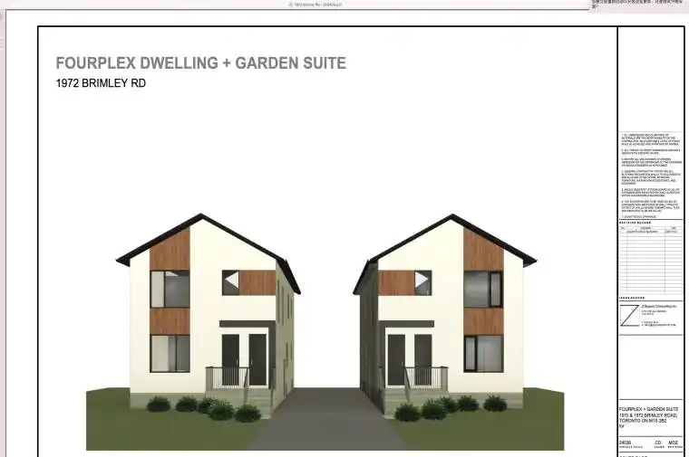 Attention Builders/Investors! Don’t Miss This Rare Opportunity To Build income rental property. will be Sale together with 1972 Brimley rd LOT .2 lot can be build 10-unit rental apartment total 38 rooms. Building permit application pending, expected to be approved in July . Comply with CMHC mortgage policy.Please see the attached surveys and reference plans. This 38′ x 159′ Severed Lot Is Conveniently Located To Nearby Amenities And Attractions. This Well Mainted Lot is Leveled and Features Access to Sewers, Municipal Water And Utility Lines. TTC At Door Step. Walking Distance To school Scarborough Town Centre. Easy Access to Hwy 401. Design drawing view attachment