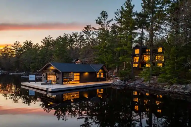 The epitome of luxury living on the pristine shores of Lake Muskoka. Nestled within one of the most coveted locations in Muskoka, this property offers perfect South Western exposure for all-day sun, breathtaking sunsets, sought-after topography and epic deep waters off the end of the dock. Welcome yourself into this meticulously newly built retreat beautifully crafted by Kelly Project Management. Entering, you are greeted by a custom kitchen designed with the utmost taste, featuring high-end cabinetry and modern appliances. The heart of the cottage boasts a cozy room surrounding a masonry fireplace, providing the perfect setting to enjoy your early morning coffee or late-night cocktails from the custom-built bar. The high cathedral ceilings in the living room and kitchen create an open and airy ambiance, complemented by epic windows that flood the space with natural light. Dine beautifully with friends indoors or on the expansive deck offering the perfect setting with breathtaking lake views. The stunning main floor primary bedroom has a custom walk-in closet space and ensuite with a gorgeous soaker tub creating a spa-like retreat. This showpiece is equipped with 3 more beautifully appointed bedrooms, office, and 4 additional baths throughout. The lower level offers living space, storage and laundry facilities, creating the perfect blend of functionality and entertainment. Outside, follow the granite stone pathway adorned with mature Muskoka pines and lush foliage to the flawlessly designed 2-slip boathouse on 195 ft of shoreline. The stunning BH is equipped with a spacious dock area creating the perfect setting for enjoying the serene waterfront lifestyle. Just minutes away, you’ll find prestigious golf courses, high-end restaurants, and endless shopping opportunities. Make your Muskoka cottage experience truly perfect with this turnkey, fully furnished offering. Don’t miss out on this rare opportunity to own a piece of Muskoka paradise.