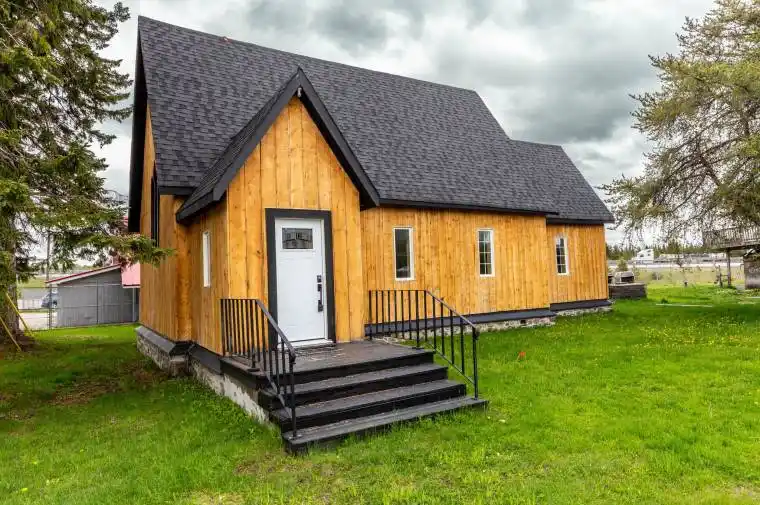 Step into a world of opportunity with this remarkable property a former church ready to be transformed into a truly exceptional residence or creative retreat. Brimming with character and architectural beauty, this one-of-a-kind space features towering vaulted ceilings, vintage stained glass windows, and an open layout that invites your creativity. Much of the heavy lifting has already been done with several renovations completed, including the addition of charming wood siding. The expansive interior layout allows for a potential 3-bedroom, 1-bathroom design, with room to incorporate a spacious kitchen and inviting living areas. A former storage space is ideally sized for a primary bathroom, and an upper loft area offers additional square footage that could be finished for more bedrooms, an office, or a cozy lounge. This property is an excellent fit for investors and visionaries looking to blend historical character with modern comfort. With no rezoning needed to install a kitchen or bathroom (permits required through the township and septic authority), you can bring your plans to life with fewer regulatory barriers. If converting to full-time residential use is part of your vision, a zoning change from Institutional would be required. Bonus: A natural gas line is already available at the lot line and can be connected, offering flexibility for heating and appliances. Located just minutes from Highway 11, this location offers both convenience and peaceful surroundings. Whether you’re creating a unique home, a studio space, or an income-generating property, the potential here is unmatched. Own a rare piece of history and shape its future. Book your showing today.