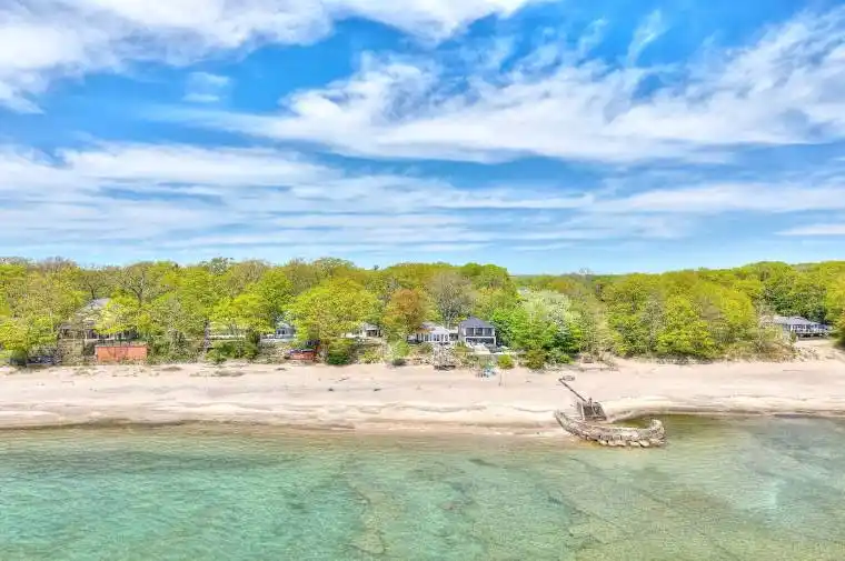This charming bungalow at 2901 Vimy Road in Port Colborne offers a tranquil waterfront lifestyle with direct access to Lake Erie’s sandy shoreline. This three-bedroom home features breathtaking south-facing views of the water, making it the perfect retreat for relaxation and outdoor enjoyment. The expansive open floor plan overlooks the lake, with a large great room that seamlessly connects to the rest of the home. The bright kitchen, equipped with stainless steel appliances, flows into the spacious dining room, while the cozy family room offers a walkout to the multi-level back deck. Here, you can easily transition between indoor and outdoor living, enjoying the stunning lake views in complete comfort. The back deck is designed for both relaxation and entertaining, with two upper levels ideal for outdoor cooking and dining. The lower level offers ample space for storing outdoor equipment like canoes and kayaks or additional seating for gatherings. The large backyard below the deck has plenty of space for any trailers, ATVs, etc. Inside, the 1,159 sq. ft. layout includes three well-sized bedrooms, all featuring pot lights, with the primary bedroom’s window with a direct view of the water, as well as a convenient laundry area. The family room, complete with a gas fireplace, provides a perfect place to unwind while enjoying the scenic water views. The modern kitchen is both functional and stylish with modern fixtures and glass cupboards, making meal prep and hosting effortless. Set in a peaceful rural location yet easily accessible via public roads. With beach-frontage and direct access to the sandy shores of Lake Erie, it’s ideal for nature lovers or those seeking a quiet escape. Soak up the sun and the laid-back charm of Port Colborne, where sandy beaches and clear waters offer the ultimate summer escape. This beachside community invites you to embrace the easygoing lifestyle – barefoot walks, waterfront views, and endless sunny days by the lake.