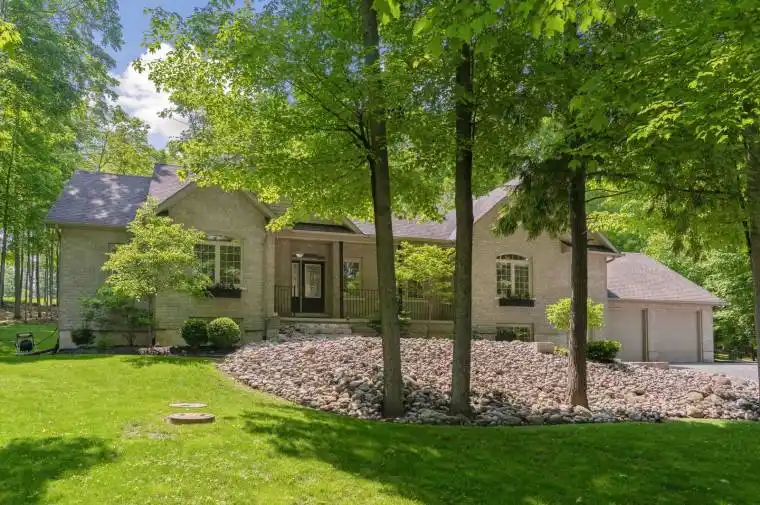 Opportunities like this are rare-a professionally finished,estate-style 2000+ sq.ft. bungalow with an oversized 2-car garage,nestled on just over an acre in one of Peterborough’s most desirable communities.Set back from the main street, a spacious driveway leads to this elevated home,surrounded by mature trees, prof.manicured gardens & expansive lawns. Step into a spacious foyer that opens to a bright & open main level.The 12′ vaulted ceilings and lg. windows that flood the home with natural light,creating a warm & welcoming atmosphere throughout.The main floor features 4 generously sized bdrms, incl. a primary suite w/ a 4-pc ens & an oversized window overlooking the serene surroundings.A lg. 3-pc bathroom provides ample space for family & guests. Conveniently located on the main floor, the laundry area offers direct access to the B/Y.Central to the heart of the home,the kitchen features an oversized island,custom wood cabinetry, & an open-concept design-ideal for both daily living and entertaining. It flows effortlessly into the family room,where a striking floor-to-ceiling stone fireplace and expansive windows overlook the backyard, connecting seamlessly to the dining area.On the lwr level, you’ll find a 5th bdrm & 4-pc bath-an ideal space for teenagers, guests, or extended family.The newly professionally fin bsmnt also features expansive family & rec rms, offering endless potential to customize the space to your lifestyle. A 2nd staircase provides access from a private ent through the garage & a dedicated mudroom,adding both functionality & convenience.Step outside & enjoy an outdoor retreat designed for relaxation and entertaining.An armor stone walkway welcomes you to the Front Entrance,while a spacious rear deck offers the perfect setting for summer gatherings & a cozy focal point for evenings under the stars.The partially fin 3-season room adds flexible space to enjoy the outdoors in comfort.This oasis is a true haven for nature lovers & entertainers alike.