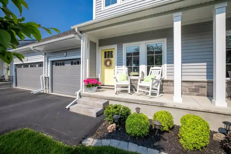 Here is a wonderful opportunity to enjoy small town living in Deerwood Lane, an exclusive complex of high quality townhomes in the beloved Village of Ridgeway. This stunning custom built home has two bedrooms plus den, three full baths and is close to Lake Erie and sand beaches to enjoy. Spacious and open concept floor boasts high end elements with its 9 ft. ceilings on main level, vaulted ceilings in livingroom, casement windows, beautiful trim, engineered hardwood flooring, recessed lighting and gorgeous light fixtures throughout. Exceptional Chef’s kitchen with upgraded shaker cabinetry with soft close drawers, quartz counters, 8 ft. island and stainless steel appliances including five burner gas stove. Special features include main floor laundry, den with French doors and three panel sliders to back deck with pergola. On second level there is a large primary bedroom with vaulted ceiling, pocket doors to lovely ensuite and walk-in closet. There is also a second bedroom with its own four piece bath and walk-in closet. All bathrooms are lovely with upgraded cabinetry, counters, faucets and flooring. The basement is large and unfinished with a rough in for a bathroom to put your own stamp on it if you desire. There is an attached garage with garage door remote. This desirable area is truly a delight and walking distance to amenities with quaint, locally owned shops and restaurants, market, Post Office and Friendship Trail. Meticulously maintained and move in ready this home is awaiting your arrival!