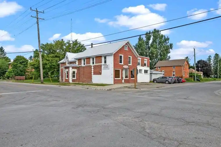 A recently renovated, well-maintained two-story brick building previously used as a business office. Some $380,000 spent in renovations. Located in Cambray at the junction of Elm Tree Rd & Highway 9, just minutes outside Lindsay & under an hour to Peterborough & Port Perry. Easily converted into two separate office spaces with separate entrances, hydro & HVAC systems. Detached 20’x 28′ double garage with concrete floor; internet tower; two propane fireplaces, one in large reception area. Commercial (C1) zoning allows for residential use of part of the building along with numerous alternative uses including but not limited to retail sales, health centre, commercial school, business or professional offices, funeral parlour, restaurant, upholstering & furniture repair. Original use – residence & general store; could be converted back. Kitchen, three washrooms, board room; two new & separate electrical services. Large lot (0.41 acres) for additional buildings & parking. So much potential!