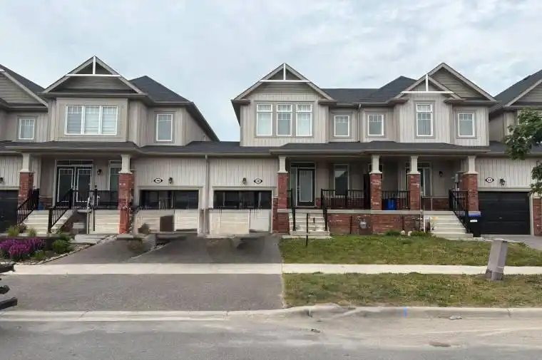 Welcome to this 5-year young 2 storey townhome in beautiful Collingwood! The welcoming covered front porch is the perfect place to enjoy a beverage while watching the world go by. Upon entering the home, you will be greeted by a spacious entry, soaring 9 ceilings, a 2-piece bath, a sizable living room that is open to your stylish eat in kitchen with convenient breakfast bar, stainless steel appliances, tile backsplash & walk out to a 16 X16 ft concrete patio contiguous with the deck, and a partially fenced back yard. Your outdoor retreat is beautifully landscaped, ideal for relaxation and entertaining. Upstairs you will find three spacious bedrooms & a 3-piece bath. The primary bedroom offers ensuite privileges with a beautiful glass shower. The lower level includes a finished rec room with hardwood flooring; perfect for additional living space to enjoy with family & friends. This floor also offers a convenient 3-piece bath & laundry room equipped with a new washer & dryer. Located close to walking and biking trails, the beach, a ski hill, and downtown shopping and dining, this home offers the perfect blend of lifestyle and accessibility.
