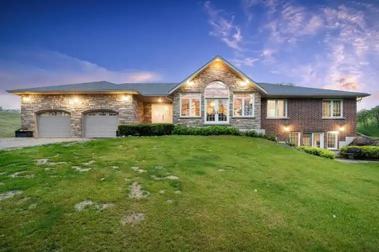 Top 5 Reasons You Will Love This Home: 1) Tucked away on just over 3-acres, this exceptional property offers seclusion and convenience; surrounded by lush landscaping and natural beauty, it creates a peaceful retreat just minutes from everyday essentials 2) Step inside to soaring vaulted ceilings and a layout that radiates warmth and sophistication, including a living room that welcomes you with a cozy gas fireplace, an oversized kitchen that impresses with granite countertops, and recent updates, including brand-new vanities in both the main bathroom and ensuite 3) Whether you’re entertaining or simply unwinding, the backyard is a show-stopper, featuring a sparkling saltwater inground pool, a separate hot tub, and multiple zones to relax or host; downstairs, the walkout basement expands your space with a generous recreation and games room, a second fireplace, a full bathroom, and a dedicated theatre room for the ultimate movie nights 4) Car lovers and hobbyists will appreciate the expansive tandem double garage, with room for four vehicles, soaring ceilings, and interior access to both the main and lower levels for added functionality 5) Every detail of this home has been thoughtfully curated, from the cold cellar and abundant indoor space to the seamless indoor-outdoor flow, offering a lifestyle where everyday living and memorable entertaining come naturally. 3,921 sq.ft. of finished living space.