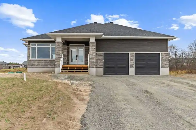 Located in the second phase of Hogan Heights, this thoughtfully designed bungalow combines the tranquillity of country living with the convenience of nearby amenities. Set near the Algonquin Trail, the property offers easy access to recreation, shopping, and schools. The Huntley Model by Mackie Homes features approximately 1,740 square feet of above-ground living space and showcases quality craftsmanship throughout. The three-bedroom, two-bathroom layout is both functional and inviting, enhanced by natural light and an open-concept design. The dining area flows seamlessly into the great room, which includes a cozy fireplace, an elegant tray ceiling, and a patio door that extends the living space to the rear porch and backyard. The kitchen is well appointed with granite countertops, ample cabinetry, a pantry, and a centre island that is ideal for casual meals. A practical family entrance with a laundry area provides interior access to the two-car garage. The primary bedroom features a walk-in closet and a well-appointed 3-piece ensuite, offering a comfortable and quiet retreat. This property is currently under construction.
