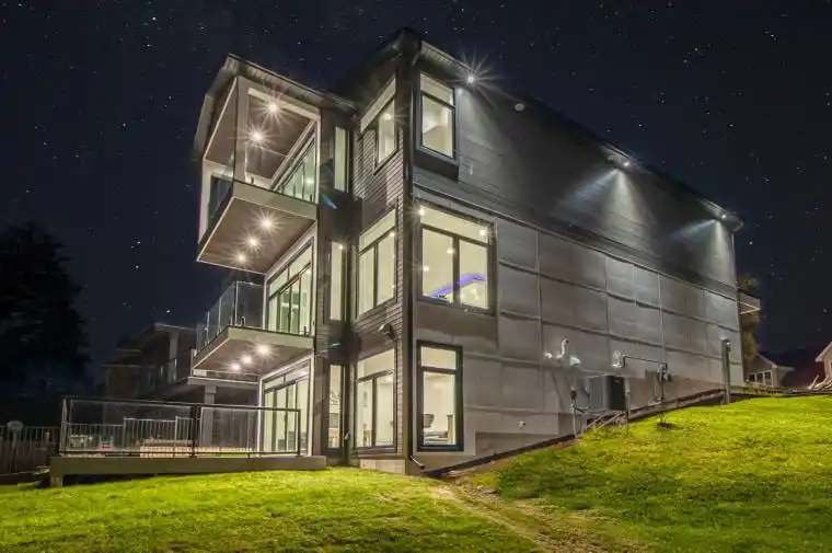 GRAND BEND CONTEMPORARY LUXURY RIVERFRONT HOME W/ PRIVATE BOAT DOCK | PREMIUM UNPRETENTIOUS PERFECTION: This stunning one of a kind 5 bed/4 bath masterpiece is one of the most impressive waterfront homes in GB. With spectacular & distinctive high-end finishing from top to bottom, the comprehensive variety of indoor & outdoor living spaces across the 3 mind blowing levels showcase classy & dramatically efficient use of space w/ all of the modern features one would expect w/ a 3 yr young home still under warranty. This truly unique beach house is simply begging for an eminent watercraft to be docked 30 ft from your riverfront door. A list of exceptional features is available upon request, featuring premium HVAC componentry including a smart capable modulating furnace w/ infinite speeds, modulating A/C system, Southern Comfort 4 season triple insulated windows, top of the line exterior lifetime composite products including Artisan Aspyre siding, hot water recirculation system, 3 gas fireplaces, in-floor radiant heating (hot water) in the lower level & fully insulate/HEATED garage, 10 ft ceilings on main & 9 ft in upper & lower levels, multi-color multi-phase ceiling lighting, solid core doors, staircase lighting, stalwart steel roof, & the best darn tile work in Grand Bend! The list goes on & on. The airy feel of the large principal rooms is ideal for large family gatherings or entertaining, a characteristic of this home that is amplified by the endless covered & uncovered outdoor balconies & decks constructed w/ Dectec membranes & Trex composite decking. As you approach the riverfront, the quality of this property remains evident w/ the permanent fixed docking on piers engineered to accommodate a boat lift & providing ample square footage on the dock. Tucked away on a quiet cul de sac just a short boat cruise or steps to amenities, beach, & sunsets, this superb low maintenance location & home provide a lifestyle worthy of this price point, & it comes FULLY FURNISHED!