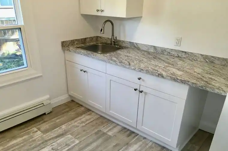 Tiny Bungalow Semi Detached Home with private entry and access to fenced and shady rear yard. A TINY space suitable for one single person – a Bachelor or Bachelorette Apartment House with separate Full service Kitchen and Bathroom with Stand up Shower. This entire unit has been renovated NEW from top to bottom with new thermal windows and doors, fixtures, Electrical and Plumbing. BRIGHT and CLEAN, your very own little home without the exterior maintenance. All utilities are included in this lovely rental unit and you can literally walk to everything. Public transit stop across the street and shopping, Bakery and Banks, Highways and Parks all within walking distance to this unit. Includes all Utilities, Exterior maintenance and Yard Maintenance.