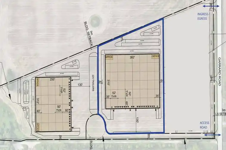 Design-build opportunity in prime Whitby location. +/- 118,000 SF proposed freestanding building with the opportunity to customize to suit. Pending site plan approval. Access to variety of amenities & large labour pool. 130′ shipping court depth, 52’x50′ bay sizing & staging bay. Heavy power available. LEED & Zero Carbon certification available.