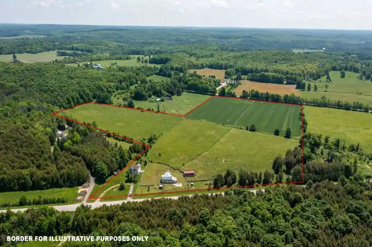 24 acre hobby farm just west of Markdale on a paved road with natural gas. The property also has frontage on a sideroad making access to the 15 acres of crop land convenient. Approximately 7 acres are currently being used for pasture. There is a hobby barn and storage building. The 4 bedroom farmhouse has one main floor bedroom, an eat-in kitchen and a spacious family room with a walkout to the deck and back yard. Great little farm package. Good country views from the back of the farm where a new set out buildings could be built.