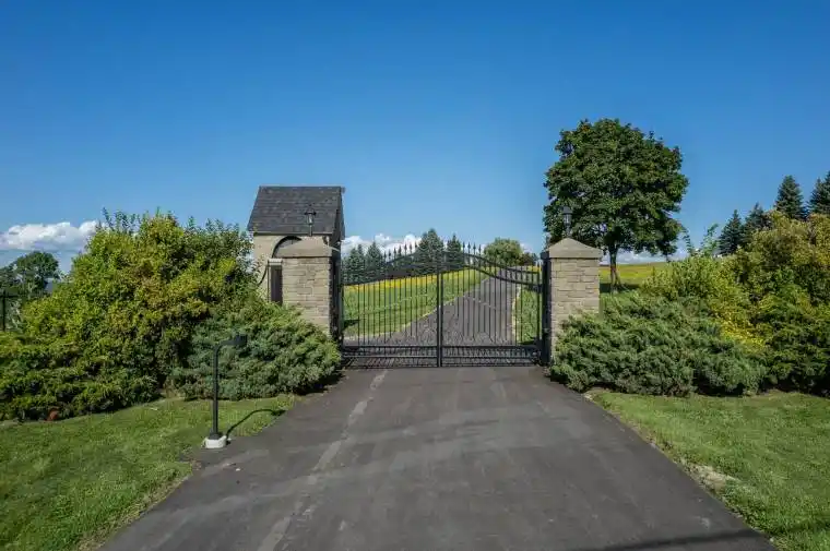 A privately gated drive leads to this remarkable newly built 7860 square ft home embracing endless views. Twenty-six rolling acres with trails and vistas over king township. The spectacular layout features a main floor great room, primary bedroom suite on the main floor, separate loft, multiple walk-outs, impressive vaulted ceiling heights and an abundance of natural light. All six bedrooms have ensuite bathrooms. The spacious loft space on the second floor includes an additional laundry room as well as a walk-in closet and custom millwork throughout. This countryside oasis is an entertainer’s paradise with a lower level theatre room, wine cellar and open concept living/dining quarters overlooking the pool and 5-stall stable. Truly the epitome of living in serenity.