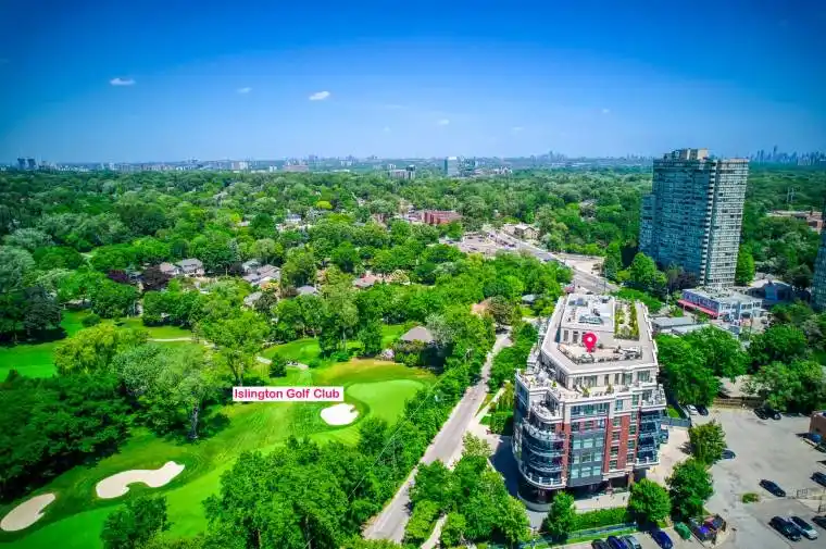 Welcome to this Premium Boutique Building offering exclusive living, where the Paisley Model penthouse delivers an exceptional blend of elegance, privacy, and sophistication-all set against unobstructed views of the prestigious Islington Golf Club. This fully renovated residence showcases premium, high-end finishes throughout and offers nearly 2,000 square feet of thoughtfully designed living space. With soaring 10 and 12-foot ceilings, the interior feels expansive and filled with natural light. The main level features three large balconies overlooking the 8th hole of the Golf Course – two from the principal living areas and one from the primary bedroom seamlessly connecting indoor luxury with outdoor tranquility. The second level opens to your own 1,000 square foot private rooftop terrace, complete with a second kitchen and gas hook-up, perfect for entertaining or simply enjoying the sweeping golf course and city views. Ideally located, this penthouse is just 10 minutes from both Downtown and the airport, 5 minutes to the lakefront, steps from the subway, and close to three of Torontos premier private golf clubs. This is the pinnacle of refined urban living.