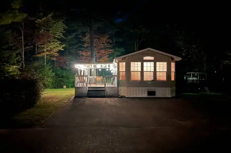 Tucked away on a peaceful street, just a short walk from the sandy shores of Georgian Bay. The cottage includes 1 bathroom & 2 bedrooms one with a queen-size bed and the other with bunkbeds that have plenty of under-bed storage. Situated on a full engineered concrete pad, the unit provides clean and dry storage underneath. The property also features a paved driveway and a spacious shed. Fully furnished, this retreat is ready for your family to start enjoying immediately. Resort amenities include access to five inground pools, a splash pad, clubhouse, tennis court, playgrounds, mini-golf, and a short walk to the beach. The gated resort with security ensures peace of mind. Seasonal site fees for 2025 $7025+HST. Golf Cart Included w/ Sale Price!!