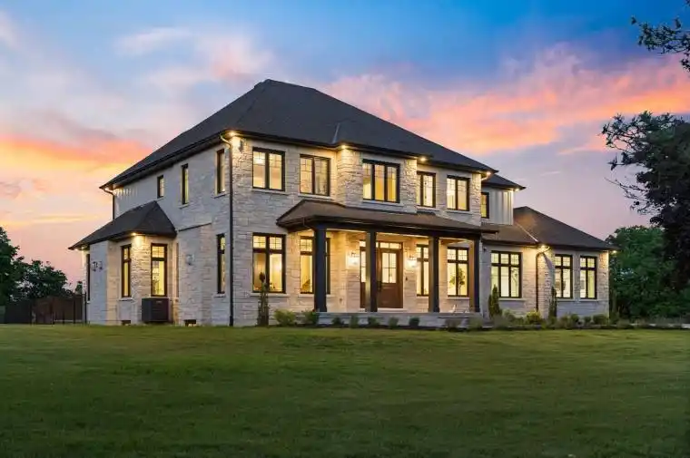 Presenting a once in a lifetime property. Welcome home to the iconic Falkland Springs Estate at 30 Brant County Highway 2, Brant. A generational retreat on over 10 acres of scenic countryside. Custom built in 2024, this elegant showpiece is perched atop a breathtaking landscapea legacy property offering unmatched privacy and grandeur. Equipped with outbuildings and ponds, start the tour through a gated entry that leads up a winding and fenced road. Commanding a staggering 7472 sq ft en masse, with nearly 2000 sq ft in the oversized 4 car garage and 7100 sq ft of which is masterfully crafted finished living space. The home radiates timeless sophistication. Find 6 bedrooms and 6 bathrooms including a separately accessed and full in law suite and full kitchen. Enter the home into a bright and inviting foyer. To the left, a richly appointed office with custom built-ins and a gas fireplace sets a refined tone. On the right, an elegant dining room showcases intricate ceiling details, ideal for formal gatherings. The heart of the home is the open-concept kitchen and living room. Coffered ceilings and a cozy gas fireplace create warmth, with sight-lines of private resort-style backyardcomplete with an outdoor kitchen, covered patio, gas fireplace, and heated saltwater pool. The chefs kitchen outfitted with high end, built-in appliances. It seamlessly blends functionality with luxury with an abundance of custom cabinetry and ample counter space. Upstairs enjoy a coffee bar leading into the primary suite with walk through closet, a stunning en suite and a balcony overlooking the pool and mature trees. The bright basement is home to the secondary suite but is still versatile and has room for the whole family! Enjoy an additional rec room, a sauna with plenty of seating and a dedicated theatre room. This home has it all! For the hobbyist the larger of the outbuildings was once a hatchery is 5387 sq ft. For the discerning buyer; dont wait, begin your legacy today.