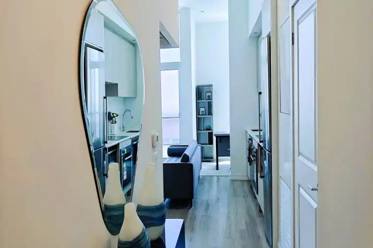 The luxurious lifestyle of the new elite has now begin! Fully furnished model suite by the Developer, this is the builder’s inventory brand new unit.Builder’s hidden gem offers the best views in the building, showcasing the CN Tower and the finest cityscape! This unit is furnished by the developer and has a south-facing penthouse view with an 11-foot high ceiling. It comes equipped with a full set of high-end furniture, including some kitchen appliances and a coffee machine, ensuring you can move in without any worries! Den can be second unit to live as well!