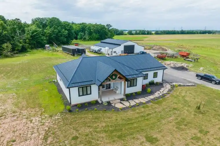 Welcome to 2848 Mountain Road in Lincoln! This gorgeous 90+ acre property is the epitome of quiet country living. This custom home built in 2022 oozes farmhouse charm and boasts 1,727 square feet of one floor living. The open concept floor plan is perfect for entertaining, with large dining and living areas and a 4-seat kitchen island! The main floor is flooded with light from beautiful windows in the foyer and patio door walkout. There are 2 bedrooms and a main floor bath, featuring a custom wine barrel vanity. The master suite (the 3rd bedroom) is a showstopper! The bedroom is a large oasis that leads to the spa-like master bath. The bathroom features a beautiful black free-standing tub and large walk-in shower with beautiful tile work. The unfinished basement is a blank canvas just waiting for you to put your own touch on it. Attached to this gorgeous home is a huge 2.5-3 car garage offering in-floor heating for those cold winter days and nights. Head outside to your Gorgeous 90 acre property with approximately 17 acres of beautiful bush and then check out every man’s dream…… The heated detached 32’x72′ shop built in 2021 which comes with hydro, on demand hot water and in-floor heating and an attached 14’x72′ lean-to and an attached 14’x72′ barn……a country living luxury. Call Today to view this amazing property sooner than later as it is one of a kind!