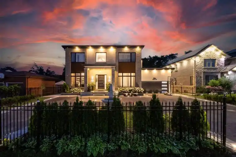 An Architectural Masterpiece of Luxury Living Sitting On a 77’x147′ Lot where Timeless Design Meets modern Luxury. Spanning Over 6,000 sq. ft. of Meticulously Crafted Living Space, This Extraordinary Residence is More Than A Home – It’s A Lifestyle. Designed with Unparalleled Attention To Detail, This Fully Upgraded 5-Bedroom, 7-Bathroom Home Blends Sophistication, Elegance & Comfort into One Breathtaking Package. Approached By Entry Points, A Circular Driveway & A Stunning Stone Water Fountain, The Home’s Arrival Experience is Nothing Short of Spectacular. The Soaring 12-foot Ceilings, Walls Of Expansive Windows & One-Of-A-Kind Moss Wall Creates A Warm Yet Dramatic Atmosphere, While Rich Hardwood Flooring Flows Seamlessly Throughout. The Chef’s Kitchen Is At The Heart Of The Home. Elevate Your Culinary Experience With The Kitchen’s Stunning Quartz Countertops, A Grand 10 Ft Waterfall Central Island-Top-of-the-line Built-in S/S Appliances Equipped Within Custom Cabinetry Extending Gracefully To The Ceilings Imparting An Undeniable Sense Of Grandeur & Sophistication. Elegance & Efficiency Extends Upstairs, With Extended 10 Feet ceilings, The Primary Suite is A Sanctuary Of Comfort & Elegance. A Custom Electric Fireplace, Expansive Walk-In Closet With Custom Organizers, & Spa-Inspired Ensuite Featuring His-and-Her Sinks, A Deep Soaker Tub, A Glass-Enclosed Rain Shower & High-End Finishes Creates A True Private Retreat. Each Additional Bedroom Offers Private En-suite Bathrooms, Ample Sunlight & Premium Finishes Making Every Room Feel Like A Personal Suite. The Fully Finished Basement Thoughtfully Designed To Serve As A Self-Contained Rental Unit Or A Comfortable In-Law Suite With 2 Spacious Bedrooms & 2 Full Washrooms + An Open Concept Kitchen Fully Equipped With Upgraded Appliances. Step Outside To Meticulously Landscaped Grounds With Fruit Trees Serviced By A Sprinkler System, A Custom Deck & A Covered Pergola.This Home Is The Embodiment Of Luxury Living.