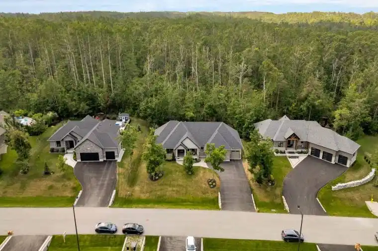 Cameron Estates has quickly become one of the most highly desirable estate communities in all of Simcoe County, Here’s why – The location is truly second to none – a 5 minute drive brings you to Barrie’s North end where you will find shopping, restaurants, grocery and all daily amenities, yet when you are in the neighbourhood you feel complete tranquility and isolation. That’s because there are no through streets in this community and it is entirely surrounded by the best outdoor recreational amenities the area has to offer. A Club Link golf course (Vespra Hills) boarders one end of the neighbourhood and Snow Valley Ski Resort the other. You’re also surrounded by forest which provides incredible hiking, biking, and walking opportunities and you have fantastic local business like Barrie Hill Farms just a few moments away. If you aren’t sold on the location just yet the home will certainly seal the deal. This custom built bungalow sits on one of the best lots in the neighbourhood with no rear neighbours providing 4 seasons of privacy. Featuring well over 4000 sq ft of beautifully finished and impeccably maintained living space this home has so many features to love including the spacious floor plan with 3 bedrooms + the all important home office. The open concept design flows perfectly from the gorgeous kitchen with pantry and large breakfast island, into the dining space, and over into the grand family room with 13 foot vaulted ceilings. All 3 spaces overlook the pristine and private rear yard making indoor/outdoor entertaining seamless. Rounding out the main floor is an oversized mudroom/laundry combination and a stunning 3 season covered porch directly adjacent the kitchen. The finished lower level offers a ton of additional space whether it be rec room, home gym, flex space, additional bedroom, or ample storage. Separate entry from the garage into the lower level allows for the flexibility of an in-law suite. All of this sits on a landscaped half acre lot.