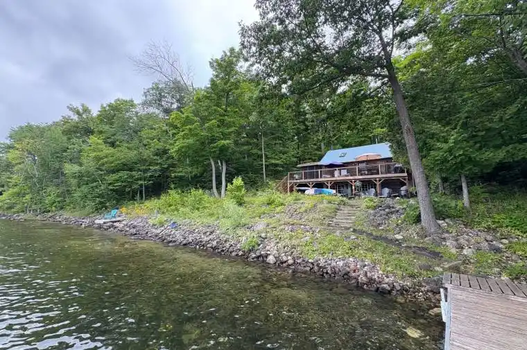 Enjoy 200ft (double lot) of pristine waterfront on Crow Lake. Beautiful clean shore line, great for swimming, fishing and boating. The cottage features 1 bedroom + Loft, 3pc bath, kitchen, screened in porch and large deck over looking the water. Set on a private lot with ample parking, Crow lake offers great fishing, boating, swimming and access to Bobs lake at the south end.