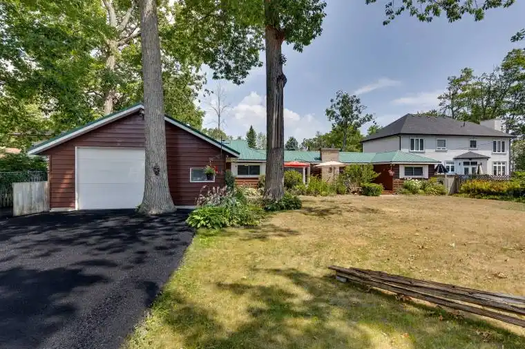 Welcome to 3929 Alderly Avenue, a rare opportunity to own 50 feet of waterfront access on the shores of Lake Simcoe in one of Innisfil’s most sought-after areas Big Bay Point. This charming home blends character, comfort, and extensive upgrades, offering a peaceful lakeside lifestyle just minutes from city conveniences. Step inside to a spacious open-concept living and dining area, perfect for entertaining and taking in views of the water. The beautifully renovated kitchen features solid oak cabinetry, marble tile countertops, and custom Centennial windows that flood the home with natural light. Throughout the home, you’ll find solid pine interior doors, oak trim, and brand-new flooring that add warmth and elegance. This versatile 2-bedroom, 1-bathroom layout includes a large bonus space that could serve as a third bedroom, office, or additional family room with fireplace. Comfort is ensured year-round with two newer forced-air gas furnaces, two cozy gas fireplaces, a newer A/C unit, upgraded attic insulation (including the garage), and a steel roof with a 50-year warranty. Outside, enjoy your own backyard oasis: a fully fenced retreat complete with perennial gardens, a hot tub, a chiminea, and a private concrete patio seating area. Two new decks (2025) extend your outdoor living space. For hobbyists and car enthusiasts, the attached 680 sq. ft. heated two-car garage/workshop is a dream, featuring its own gas furnace, engine hoist, 200 amp service and welding plug. Additional updates include a new gas hot water heater and transferable warranties on custom windows and exterior doors. Large paved driveway with additional space for RV or boat in fenced area. The deeded 1/8th interest in 50 ft waterfront property is perfect for hanging out at the beach.