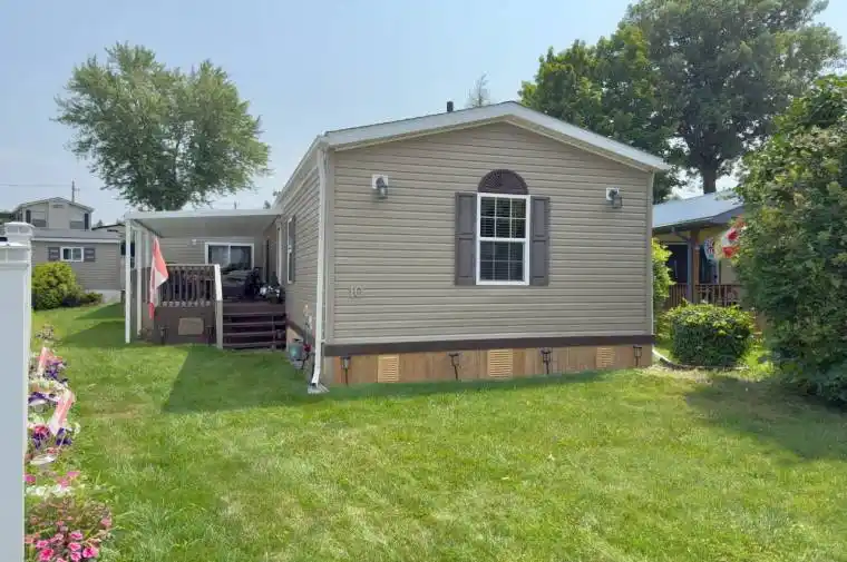 Location, Location, Location! Literally just steps away from a beautiful beach club this 10 year old, 3 bedroom, 3 season get away is sure to please. Amenities include: Large family room with natural gas fireplace, 3 pc. ensuite in master bedroom, 6 appliances, gas furnace with central air, 200 amp service, composite deck covered by metal roof and shed. The purpose of this RESIDENT OWNED Corporation is to provide mobile home and park model sites and services, coordinate recreational activities and promote a wholesome family atmosphere for its Members. Fees for May 1-Nov 30 plus 30 days during the winter are $1957.50; Full year use about $2900. Fees paid for 2025. Taxes are approximately $1100 – due in September. For the next 8 years, there is an annual payment of $1500 to upgrade septic system (2 years already paid).