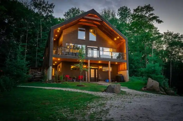 Welcome to this stunning custom-built chalet-style home, completed in 2020 and located in the sought-after hamlet of Eagle Lake. Just a short walk to Sir Sams Ski & Bike, Eagle Lake public beach and boat launch, and the charming Eagle Lake Country Market, this home offers the perfect blend of four-season adventure and modern luxury living. Thoughtfully designed with comfort and style in mind, this 3-bedroom, 3-bathroom home features a showstopping primary suite with a private walkout deck, a generous walk-in closet, and spa-inspired ensuite with freestanding tub, and a custom glass and tile shower. The chef-inspired kitchen boasts an oversized island, high-end appliances, and a butlers pantry complete with laundry. The open-concept main living space is warm and welcoming with vaulted ceilings, a cozy woodstove, and expansive windows and walkouts that flood the home with natural light and provide seamless access to outdoor decks overlooking a beautifully treed and private yard. The upper loft offers additional sleeping quarters with four Pinterest-worthy built-in beds and a flexible bonus space perfect for a home office, kids’ hangout, or reading nook. Downstairs, a fully finished lower level includes a spacious rec room and a kitchenette/bar area ideal for entertaining. The recently built detached 3-bay garage mirrors the homes architecture and blends seamlessly into the natural landscape. In the spring, a peaceful, zen-like stream flows through the property, adding to the serene ambiance and connection to nature. With thoughtful upgrades such as central air, forced air propane heating, radiant heated floors, drilled well, septic, a durable metal roof, and Generac generator backup, this is a truly turnkey, low-maintenance property ready for you to enjoy year-round.