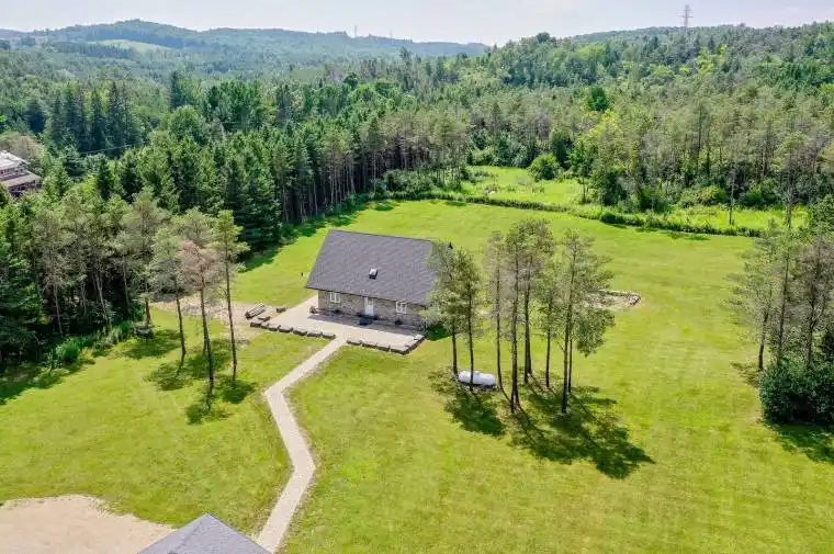 Private Ski Chalet-Style Retreat in the Heart of Mono-Over 8 Acres of Level Land. Discover peace, privacy & endless potential in this charming 1.5-storey ski chalet-style home, perfectly nestled on over 8 acres of level, usable land in the picturesque hills of Mono. Just minutes from both Orangeville & Alliston, this 4-bedroom, 2-bathroom property offers the ideal balance of rustic character & modern convenience. The stone exterior gives timeless curb appeal, while inside, the open-concept kitchen & living areas create a functional space for everyday living & entertaining. A main floor laundry room adds to the home’s convenience, making it well-suited for families, weekenders or retirees looking for comfort & simplicity. A true standout is the detached 3-car garage-spray foam insulated, heated & plumbed for in-floor radiant heat-perfect for hobbyists, car enthusiasts or additional workspace. Outdoors, the opportunities are endless: enjoy sports, host gatherings or bring your recreational visions to life on the expansive, gated acreage with two driveway accesses. Stay connected even in this private setting with high-speed Starlink internet-ideal for remote work or streaming. Whether you’re looking for a full-time residence, a country escape, or a recreational haven, this Mono property delivers space, privacy & flexibility in a sought-after location.