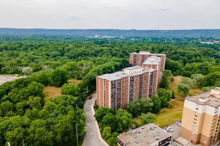 This bright and spacious 3-bedroom, 1.5-bathroom home offers captivating forest views, providing a peaceful retreat from city life. Inside, the functional layout is perfect for both everyday living and entertaining, with large windows that fill the space with natural light. Step outside to a large private balcony, ideal for morning coffee or unwinding while enjoying the serene backdrop of mature trees. Residents enjoy an impressive list of amenities, including an indoor swimming pool, relaxing sauna, games room, laundry facilities, and a fully equipped gym with cardio machines overlooking the forest. A party room is also available for hosting special gatherings. Ideally located close to McMaster University, McMaster Hospital, shopping, schools, transit, and nature trails, this property offers the best of both worlds comfort and convenience in a scenic setting.