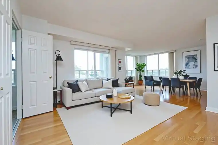 Rarely Offered Southwest-Facing Corner Suite in Prestigious Tridel Gated Community. Welcome to The Palisades by Tridel, a distinguished address where sophistication, comfort, and lifestyle meet. This rarely available southwest-facing corner suite spans over 1,600 sq. ft., offering 3 bedrooms a den and 3 bathrooms in one of the communities most coveted layouts. From the moment you enter the elegant foyer, complete with generous storage, you are greeted by an immediate sense of space and light. The expansive living and dining area, wrapped in wall-to-wall windows, is filled with natural sunshine and opens to a private oversized balcony showcasing panoramic city and treetop views, an ideal setting for breathtaking sunsets. The chefs kitchen features stone countertops, premium appliances, and abundant cabinetry, complemented by a bright breakfast area overlooking the greenery. A versatile solarium/den is perfectly suited as a home office. The primary suite offers a serene retreat with a walk-in closet and a private ensuite, while a second bedroom with its own ensuite provides comfort for guests or multigenerational living. A stylish powder room and a separate laundry room with full-size appliances further enhance everyday convenience. Residents of this gated, landscaped community enjoy resort-style amenities: a saltwater indoor pool, fitness center, party room, tennis and squash courts, saunas, and 24-hour security. Perfectly situated near golf courses, trails, schools, shopping, transit, and major highways, The Palisades offers both tranquility and connectivity. This move-in-ready residence is more than a home, it is a statement of refined living in one of Toronto’s most exclusive communities.. Pictures Showing Furniture Have Been Staged Virtually.