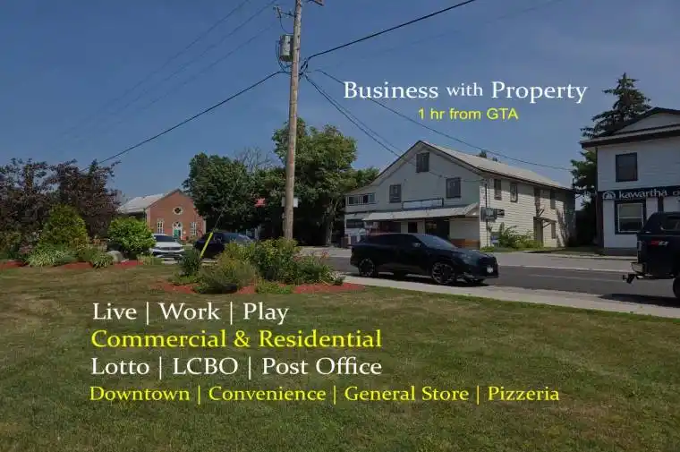 LIVE & WORK Convenience Store- business with property! If you are tired of the hustle and bustle of the city and want to live and work in a quiet area and be your own boss, this is your chance! Own the only convenience store in town- downtown location with Retail & Apartments. Convenience Store/ General Store, Liquor Store (LCBO), Post Office, Lottery Machine & Residential Apartments above. Located in the heart of downtown Keene, operating for nearly three decades and retail store updated, offering a clean and organized space. With excellent frontage on the street and ample parking on site, you benefit from high visibility. Serves the town, several nearby campgrounds, schools, clubs & cottage country visitors. The building offers the general store on the main level (with 1 washroom) and a 3 bedroom apartment (with kitchen & bathroom) above, deck in the back, barn, and storage shed. The unfinished area above and full basement is perfect for a 2nd/ 3rd apartment to generate extra rental income. The back area of the building offers a deep lot for further extension or family enjoyment. There is a big shed to store summer and winter gear and enjoy bonfires at night while staring at the amazing clear stars. Benefit from built in revenue (grocery, lotto, alcohol, post office) while building on endless additional revenue possibilities- such as cigarette, vape, cannabis, cafe, gelato, hunting and fishing, home hardware supplies, storage in barn, rear garden suite, lane-way home, tiny home or anything you can dream up! Metal Roof, Furnace (2024), Sump Pump (2022), 200 amp service, 2 Separate Meters. All Chattels, Fixtures, Equipment & Inventory Included.