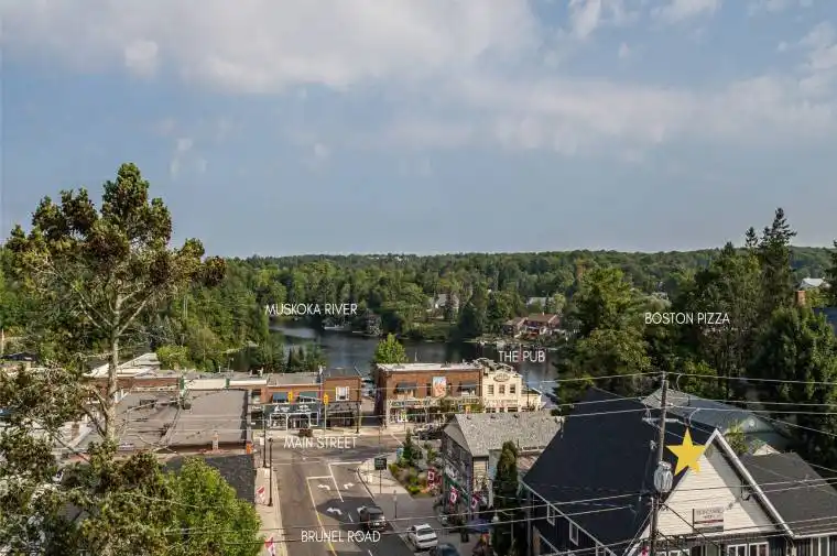 Ideal location for a commercial building featuring two available lease spaces. One is occupied by a triple-A long-term tenant, while the other is vacant and ready for leasing. This prime location in downtown Huntsville is just steps away from Main Street, the Muskoka River, the renowned swing bridge, and the lively community that Huntsville provides.The upper level boasts a spacious 1,500 square foot bright office area with walk-in entry. It is equipped with fibre internet and phone connectivity. The space includes enhancements such as Caesarstone countertops in the kitchen and bathroom, solid engineered hardwood flooring, and robust interior doors. Additionally, there is a granite entryway and a wood-burning fireplace. The layout comprises three private, roomy offices, a large open workspace, a kitchen area, a bathroom with a shower, and two storage rooms. The renovations are quite impressive. The lower level features a wall of windows providing excellent street front visibility, situated near the intersection of Main Street and Brunel, with a rare and commanding 33 feet of street-level frontage on Brunel Road. The 920 square foot area is designed with three offices, an open common area with a reception space, and one restroom. This property is located in the Central Business District with C7 zoning, allowing for a wide range of permitted uses, and includes six dedicated parking spots.