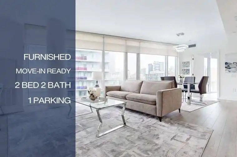**Fully Furnished, top-line hotel style, 2 Bed/2 Baths Corner Unit with **1 Parking & **1 Locker. Enjoy Luxurious Life Style! Bright & Spacious, Open Concept Layout, Quality Features & Finishes Throughout, Modern Kitchen W/StoneCounter & S/S Appliances, Smooth 9 Ft Ceilings, Floor To Ceiling Windows, Close To Downtown Core, Hwy, Step To Ttc, Shops, Restaurants, Distillery District. Great Amenities: Artists Workspace, Gym/Fitness/Yoga Studio, Party Room, Meeting Room/Lounge, Games Room, Outdoor Pool, Community Garden, Bbq Area. Vacant.