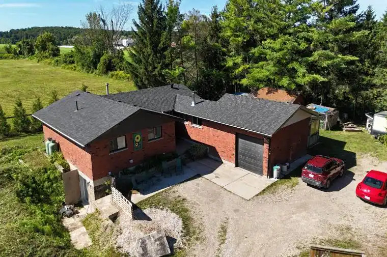 This generously sized bungalow offers over 3,000 square feet of total living space and is ideally situated in a central location, providing easy access to nearby communities and amenities while maintaining the tranquility of a country setting. Set on just under an acre, the home ensures privacy and picturesque views of neighboring fields. The main floor boasts a bright, open concept layout, seamlessly connecting the kitchen, dining, and living areas, along with three comfortable bedrooms and two full bathrooms, including an ensuite in the primary bedroom. Heated by a propane furnace, with a cozy wood stove on the main floor to help offset heating bills in the winter months. The lower level features a self-contained granny suite (BB electric heating) with an open kitchen and living area, one bedroom, a full bathroom, and a walkout with its own entrance-an ideal setup for extended families or an appealing income opportunity. Additional basement space includes shared laundry facilities, a recreation room, utility room, and ample storage. Although the current owners initiated renovations, some areas are not yet completed, though electrical, plumbing and insulation was new in 2024. This presents an excellent opportunity for prospective buyers to tailor and customize these areas according to their individual preferences.