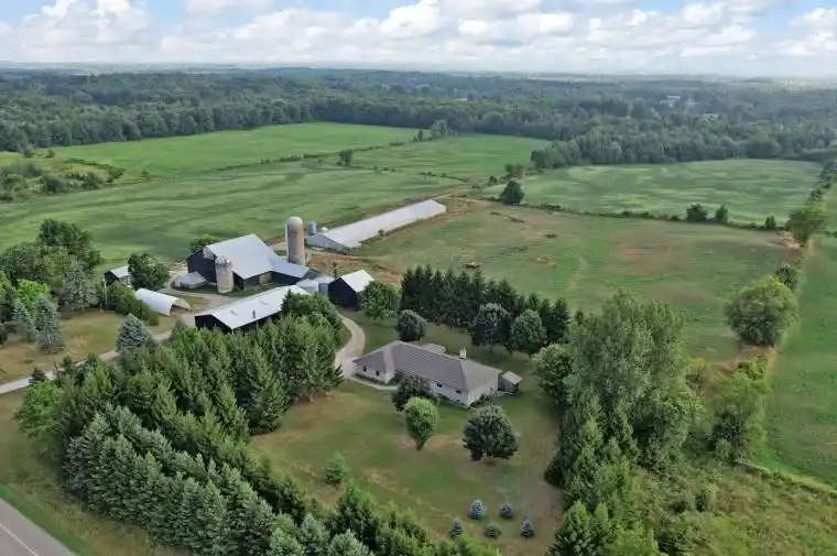 This exceptional 98+ acre property formerly a successful beef, dairy and poultry operation offers endless possibilities for farming, agribusiness, or event hosting. Set on a paved road just minutes from town conveniences and GO Train service, it combines rural beauty with outstanding accessibility. The 2,300 sq ft stone bungalow custome built in 2001 features 3 bedrooms, 4 bathrooms, a durable metal roof, and a walk-out basement perfect for a spacious in-law suite or rental income. Outbuildings include broiler barns and a magnificent bank barn, ready to support agricultural use or be transformed into a one-of-a-kind venue and rent income. Broiler Barn: 48 x 288 (13,824 sq ft) equipped with feed system, propane heaters, nipple waterers, and Big Dutchman feeders (all sold as-is) [quota not included]. Bank Barn: 3,900+ sq ft in excellent condition, with capacity for 18,000 square bales, attached milk house, and additional storage shed- ideal for agricultural use or hosting events. Drive Shed: 40 x 80 includes a heated, insulated workshop, 16 ft ceilings, concrete floors, and crane. Additional structures include silos, coverall storage, feed tanks, utility shed, single garage, and multiple outbuildings. Land Use: 65+/- acres currently cash cropped (soybeans & winter wheat), with 25 acres in hay. Income from tenanted farmers and have rights to the harvest for 2025 can be continued. 12 acres forested with mature maple trees potential for syrup production. Severance potential in southeast corner and some conservation restrictions. HST in addition to purchase price may be applied to the land. Only minutes to Acton GO Station, shopping, golf course & services. Whether you envision hobby farming, cash cropping, poultry production or developing a horse ranch with paddocks or enjoy a private country retreat with rental income, the possibilities here are endless.