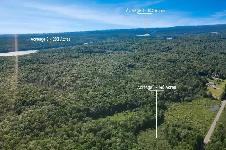 Imagine owning this exceptional 455 acres in the heart of lake country. The acreage is a mix of rolling hills, ponds, and forest with excellent privacy. The location is perfect for people looking to have water access without the cost. You are close to Kushog Lake, Halls Lake (and a great beach), plus several other smaller lakes. Boat launches to both lakes are close by. You are also within 7 minutes of the Algonquin Water Trails access and excellent hiking and snowshoeing trails at the “old Frost Centre”. The acreage has a well-maintained road through it (a legal right-of-way) that gives access to cottagers behind the property and is maintained by those cottage owners. Create a weekend retreat or build your dream home – the choice is yours. Hydro is across the road and would have to be brought into the building site.