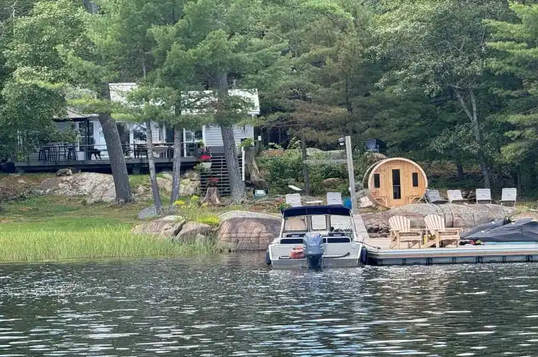 Island Retreat on Georgian Bay For Sale Escape to your shared private island paradise in beautiful Georgian Bay! This open-concept 3-bedroom cottage offers the perfect blend of rustic charm and modern comfort. Featuring a 3-piece bath with a frameless glass sliding shower door, 200 amp electrical service, and a cozy wood stove (with WETT Certificate), this retreat is designed for 3 season enjoyment. Step outside to a wrap-around deck with stunning sunset views, a covered BBQ area, and a 2-year-old dock for easy access to the water. Relax in the lakeside sauna after a day of swimming, boating, or simply soaking in the serenity. 1min boat ride from Sturgeon Bay Marina in Pointe au Baril area. Whether you’re seeking a peaceful getaway or the ultimate summer gathering spot, this island gem has it all. Don’t miss this rare opportunity to own a slice of Georgian Bay!