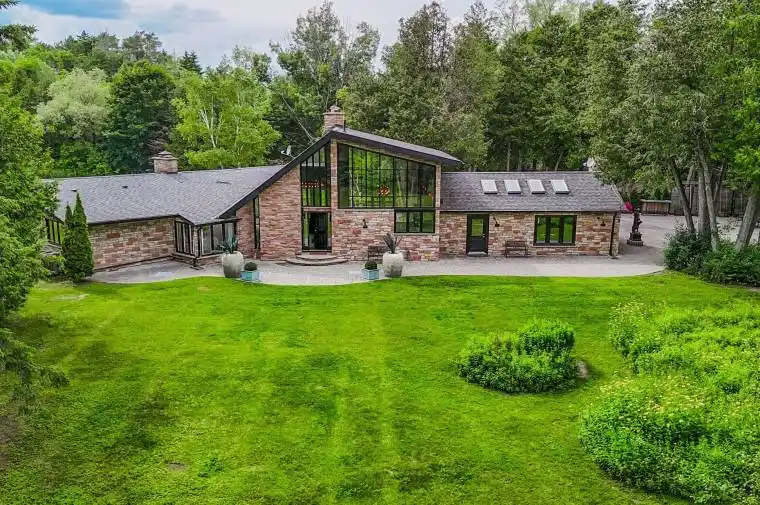 Imagine Relaxing By A Tranquil Pond At Sunset, Surrounded By A Lush Forest That Transforms With The Seasons From Vibrant Greens And Blues In Spring And Summer, To Fiery Reds And Golds In Autumn, And A Stunning Palette Of White And Blue In Winter. This European-Inspired 3-Bedroom Bungalow Offers Over 3,300 Sq. Ft. Of Living Space On A Private 20-Acre Wooded Lot, Located Just 30 Minutes From Downtown Markham. A Gated, Tree-Lined Driveway Welcomes You To The Home, Featuring A Spacious Layout That Combines Modern Comfort With Timeless Style. Expansive Picture Windows Fill The Interiors With Natural Light, While Paneled Ceilings Enhance The Elegant, Resort-Like Ambiance. The Property Features A 2-Acre Pond, Charming Gazebo, And A 2,500 Sq. Ft. Stone Patio, Providing Exceptional Outdoor Living And Entertaining Spaces. A Detached 3-Car Garage With Loft Storage And A Private 30-Minute Forest Walking Trail With Boardwalk. A True Masterpiece Of Natural Beauty And Architectural Grace This One-Of-A-Kind Property Offers An Unparalleled Year-Round Luxury Lifestyle.