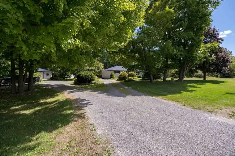 This beautiful 3 bedroom custom-built brick bungalow is situated on a 1.17 acre private county setting surrounded by mature trees and gardens. Inside the main level boasts hardwood and ceramic flooring throughout. Lovely kitchen with plenty of oak cabinetry, appliances and walkout to deck overlook the pretty backyard. Nice size dining area with patio doors leading to another deck over looking the private side yard. Bright living room with large window for lots of natural light. Generous size primary bedroom and another 2 spacious bedrooms. 2 bathrooms-4pc and a 3pc. Main floor laundry and a bonus room which could be a home office or den. Full basement. Outside, you’ll find a 24×30 detached double garage with plenty of space for your toys along with a shed for storage. Some updates include windows, counter top & back splash, garage roof etc. Whether entertaining on your deck or sitting by your fire-pit or maybe just tinkering with your toys in the garage, this could be the perfect home for you! Great location.