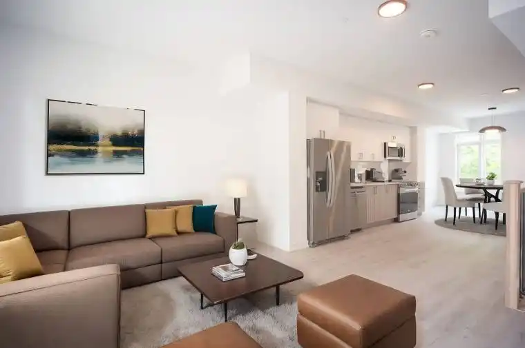 Spacious Townhouse at Eglinton & Victoria Park!This modern home offers a bright and functional layout with 4 spacious bedrooms and 4 bathrooms. Features include sleek laminate flooring throughout, an open-concept kitchen with quartz countertops, and elegant natural oak staircases. Enjoy the convenience of a private garage with direct access to the home. The versatile den can easily be used as an office or an extra bedroomperfect for working from home. Steps to TTC bus routes, just minutes from the LRT, and a 10-minute walk to the upcoming 19-acre Golden Mile Shopping District redevelopment.