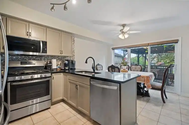 STUNNING 2-STOREY TOWNHOUSE WITH NO REAR NEIGHBOURS! Backing onto parkland in an excellent location close to GO Station, hospital, schools & shopping. This well-maintained 2 bedroom, 2.5 bath home features numerous recent updates throughout. Main floor boasts a large eat-in kitchen with walkout to private deck, spacious living room with gas fireplace, and convenient powder room. Upstairs, the master bedroom offers beautiful escarpment views, 4-piece ensuite & walk-in closet. Second bedroom features built-in laundry plus additional closet space. Finished basement adds valuable living space with recreation room, office area, and custom 3-piece bath with shower (2023). Private backyard deck with park views – no rear neighbours! Recent major updates include: NEW Furnace 2025 (Goodman), A/C Heat Pump 2023 (20 SEER, 36,000 BTU), Owned HWT 2024 (John Woods), plus Sump Pump 2019.