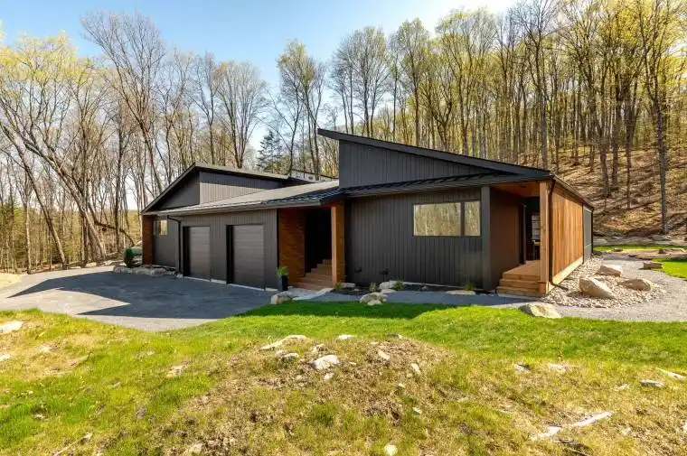 This spectacular bungalow with views for miles exudes sophistication. Set on a spacious level lot over 4000ft of meticulously designed living space awaits. Boasting soaring ceilings throughout leading to the heart of the home is an awe-inspiring custom kitchen featuring premium appliances, sprawling quartz countertops & oversized island crowned with an exquisite custom maple surface for dining. Eye level beverage fridges highlight the bar area with 2nd sink. Entertaining is breeze with the Secret Butler’s Pantry! Complete with 2nd dishwasher, ample counter space, cabinetry & 3rd sink. The huge adjacent living/dining area with reclaimed hand hewn beams warm the space alongside the modern stone floor-to-ceiling gas fireplace. A 12ft accordion door opens entirely to the Muskoka Room creating an indoor outdoor sanctuary, perfect for hosting in style. Covered entry ways keep snow off the steps leading to a massive mudroom complete with washer & dryer & a granite composite sink set in maple countertops alongside huge island with seating. Each of the 3 spacious guest suites offers unparalleled comfort, with private or semi-private ensuites, all adorned with heated floors. The primary suite is a true retreat, featuring a massive walk-in closet & 5-pc ensuite, also with heated floors & curbless shower, offering a spa-like experience. Outside, the iconic Muskoka rockscape is masterfully highlighted by strategically placed accent lighting & outdoor speakers, easily controlled from your smartphone. Also boasting oversized garage doors, extra garage depth for toy storage, & could structurally accommodate a hoist. Hop on your ATV and ride from your driveway! The home is roughed-in for a Generac generator & features a sleek standing seam metal roof. Situated across from a pristine nature sanctuary with 4km of scenic trails, this estate offers an ideal balance of luxury living & outdoor adventure, with premier golf, skiing, & boating just mins away. Be sure to check out the video!