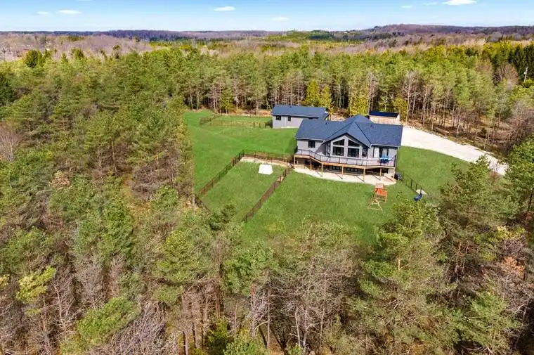 Multi-generational living doesn’t mean you have to live with each other. This property, on almost 5 acres, gives you two separate living spaces while still keeping everyone connected. The main house is bright and welcoming with large windows and a cathedral ceiling that fills the rooms with natural light. It includes five bedrooms, three full bathrooms, and a finished walkout lower level with a huge rec room, kitchenette/wet bar, four walkouts to the yard, and rough-ins for a fridge, stove, and shower. It’s a versatile space, perfect for entertaining, hobbies, or giving teens and guests their own retreat. The kitchen was designed for gathering, with a 15-foot island, porcelain slab counters, deep drawers, a built-in spice rack, and a cooktop with downdraft ventilation. It flows easily into the dining and living areas, making family meals or get-togethers simple. From the primary bedroom, step directly onto the 55-foot deck that overlooks the property, while a spacious mudroom/laundry combo keeps day-to-day living organized. The fully equipped secondary unit is ideal for parents or grandparents, independent adult kids, a home office, or even rental income. Outside, you’ll find a private setting that still keeps you close to everything, just minutes from Markdale and a short drive to Beaver Valley Ski Club. There’s over half an acre cleared, multiple fenced areas for pets or play, and wide gates for access. Modern features like geothermal heating and cooling, ethernet hookups in the gym and office with excellent internet, and a commercial-grade hot water pressure tank add comfort and peace of mind. This property makes it possible to share life with family while still enjoying your own space. It’s the perfect balance of connection and independence.