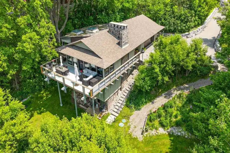 Live at the cottage but in the city! Tucked away is this unique 3 bed 2 bath gem. It is one of a kind, inspired by the iconic architect Frank Lloyd Wright. The architecture embraces natural materials, clean lines and harmonious integration with the landscape. Magnificent views of the Grand River and hole 5 at Doon Valley golf course. Step inside and be greeted by expansive windows, and open-concept living spaces that blur the lines between indoors and out. Through the center of the house is a three floor stone fireplace with two hearths. One hearth on lower and one on the main to enjoy cozy fires. Practically every room is bathed in natural light, offering tranquil views of the surrounding gardens, mature trees or the river. Custom built-ins, organic textures, and handcrafted details add timeless character throughout the home. Flexible layout with options to convert some rooms to extra bedrooms or bathrooms. The heart of the home is a beautifully appointed kitchen and great room, ideal for entertaining or cozy evenings by the stone fireplace. Step out onto the private wraparound deck perfect for morning coffee, evening dinners, or simply soaking in the peace of your personal urban oasis. This home has been lovingly tended with many recent mechanical and landscape improvements. A long list of these improvements is available.