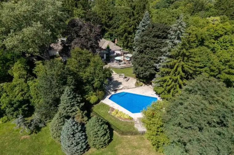 Welcome to Muskoka in the city! This extraordinary .96ac property, with its breathtaking views and total privacy, presents an extremely rare real estate opportunity. This gorgeous sprawling bungalow features 6,317SF of high-end finished space (3,417 AG) which over the last 15 years has had over 1 mil. in whole home renovations. Just to mention a few: Georgian Bay Ledge Rock exterior and massive rooftop terrace to enjoy the spectacular scenery. CHEF’S CUSTOM DREAM KITCHEN with solid wood cabinets, gas fireplace, Viking Pro Series 48″ 6-burner double oven gas range with commercial grade exhaust hood, 3 dishwashers, Bosch B/I microwave, Electrolux 66″ fridge & freezer combo, Hisense beverage fridge, Reverse Osmosis drinking water system, Commercial draft beer taps with chilled lines and True Keg cooler, Barista bar with La Spaziale commercial espresso machine, Pioneer B/I 5.1 Dolby audio system with subwoofer, Sony 42″ TV and heated floors. You may never want to leave your kitchen! Step into the Huge Great Room with 10′ ceilings. LED pot lighting T/O. Hardwood flooring T/O. Custom library/office with 2-sided gas fireplace and lounge area. Bathrooms have high-end fixturing, heated floors and extensive use of marble, granite and porcelain. Electronic blinds in kitchen, great room and primary bedroom. B/I temperature controlled wine cabinet in dining room. Special fiberglass roof shingles with 50 year warranty. Eavestroughs have LeafFilter screens. All main windows and patio doors. Concrete pool has a special paint finish, new Hayward heater, pump and salt water filtration. Recently completed basement with industrial design inspiration and bedroom with Arizona vistas. 22,000 watt Generac back-up generator. The addition of a 3-car insulated garage, heated and air conditioned. Extensive landscaping. Please click on the link below for all inclusions and floorplans. Just minutes to shopping, restaurants, schools, playground, park, trails, golf, Aldershot GO, etc. 10+++
